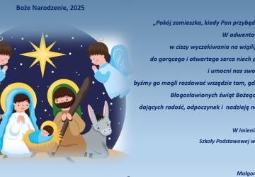 W adwentowej refleksji, w ciszy wyczekiwania na wigilijną gwiazdę, do gorącego i otwartego serca niech przyjdzie Pan i umocni nas swoim pokojem, byśmy o mogli rozdawać wszędzie tam, gdzie niepokój. Błogosławionych świąt Bożego Narodzenia dających radość, odpoczynek i nadzieję na Nowy Rok.